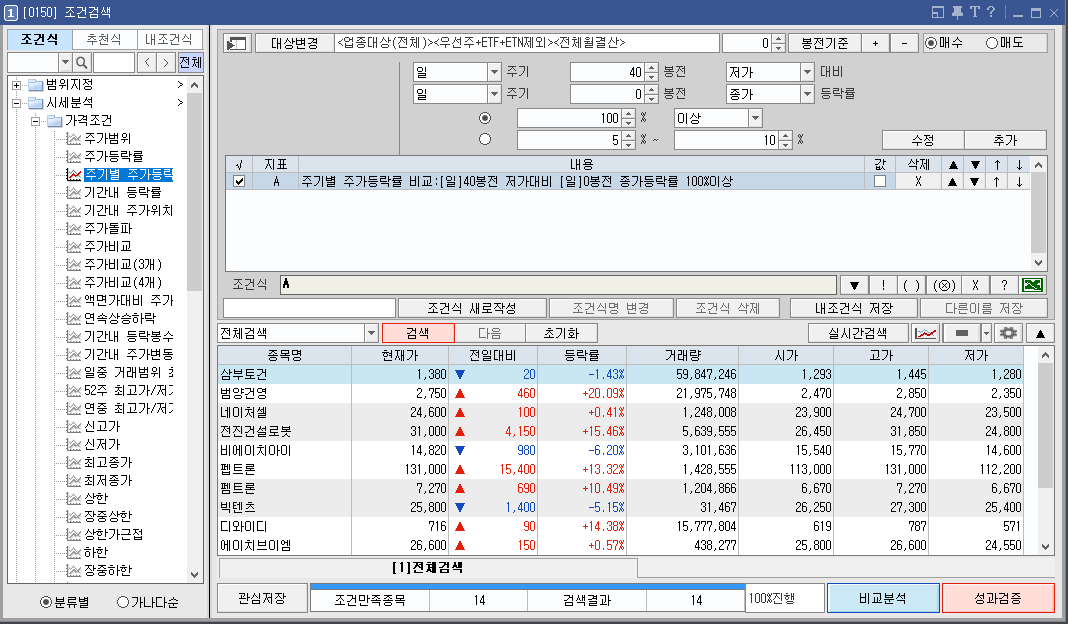 "조건식 - 시세분석 - 주기별 주가등락률 비교" 클릭