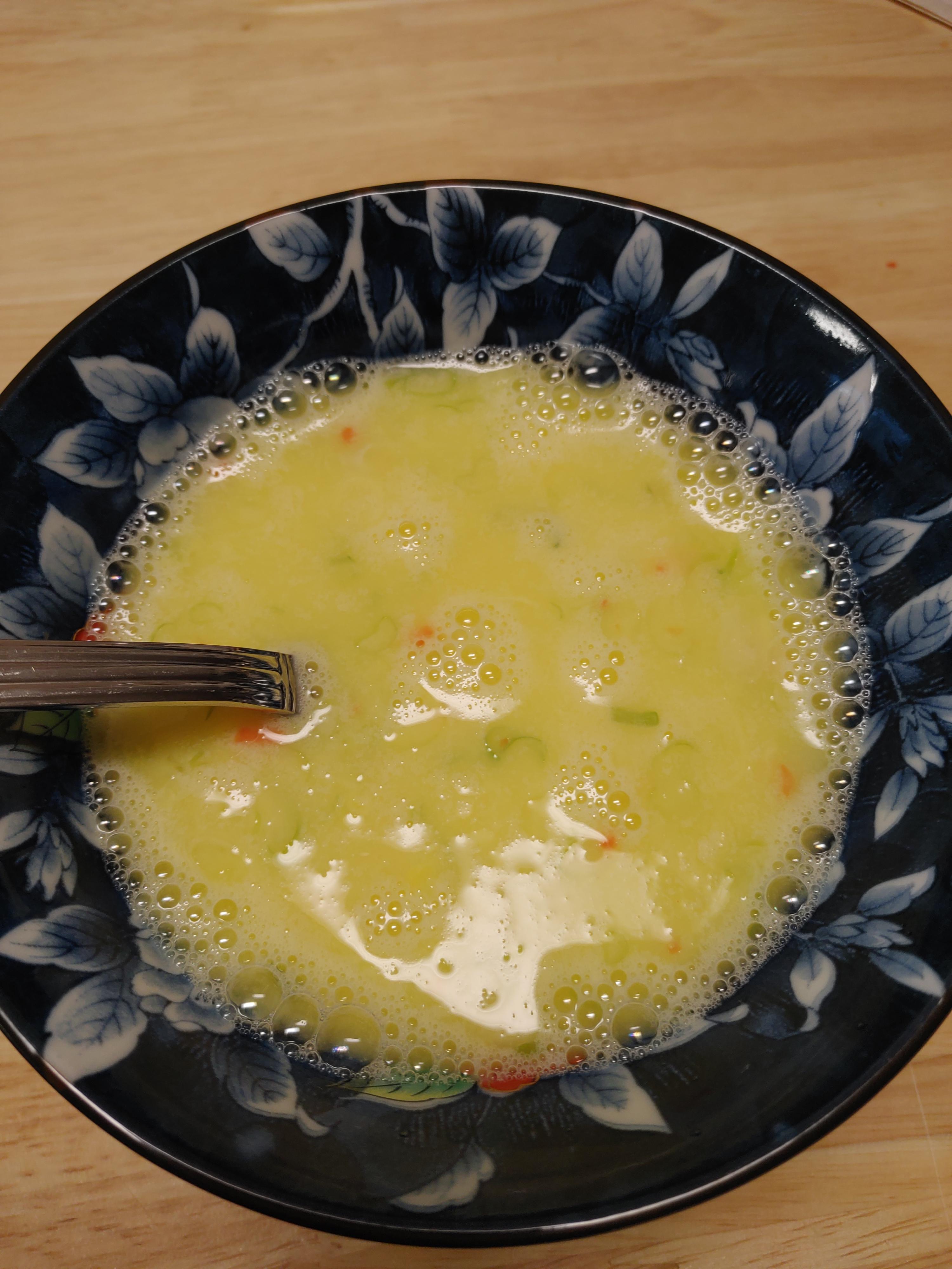 하다 보니 생각나 냉동실에서 볶음밥용 당근과 다진 파를 넣어준다.